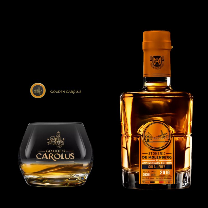 Sola Jerez is een gelimiteerde vrijgave ter gelegenheid van de 3e verjaardag van Stokerij De Molenberg (Gouden Carolus). Deze editie is een speciale blend van hun eerste eigen distillaten uit 2010 (33%) en de verschillende proefdistillaten die voor de opstart van de eigen stokerij werden geproduceerd in 2007 (67%), beide uitsluitend ('Sola') met finish op Oloroso sherry ('Jerez') vaten.