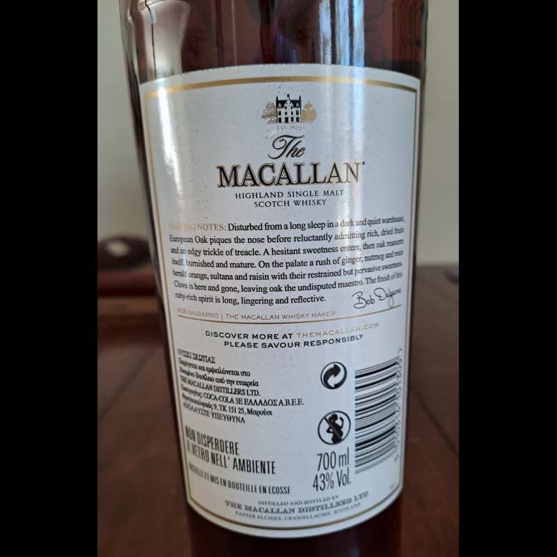 Macallan Ruby, original bottling uit de 1824 serie. Sherry Casks, Alc. 43%, 700 ml. Vulniveau: high shoulder/low neck.